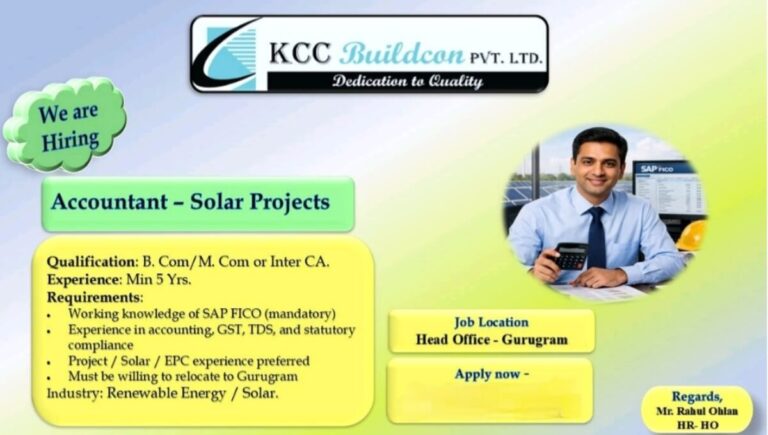 KCC Buildcon Pvt Ltd Vacancy | SAP FICO Accountant for its Solar Projects Division Company Name KCC Buildcon Pvt. Ltd. …