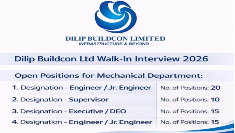 Dilip Buildcon Limited Walk In Interview | ITI, Diploma, Be and B.tech
