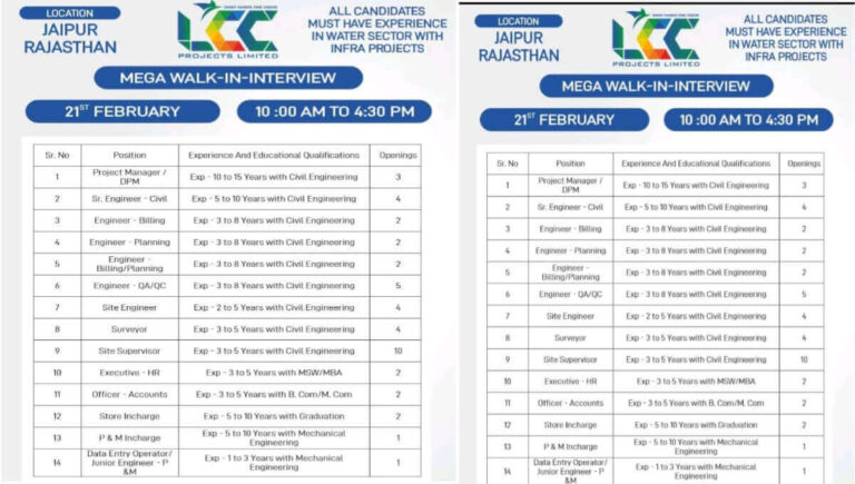LCC Projects Limited Walk In Interview | Ongoing Water Sector Infrastructure Projects Company Name LCC Projects Limited Regional Office – …