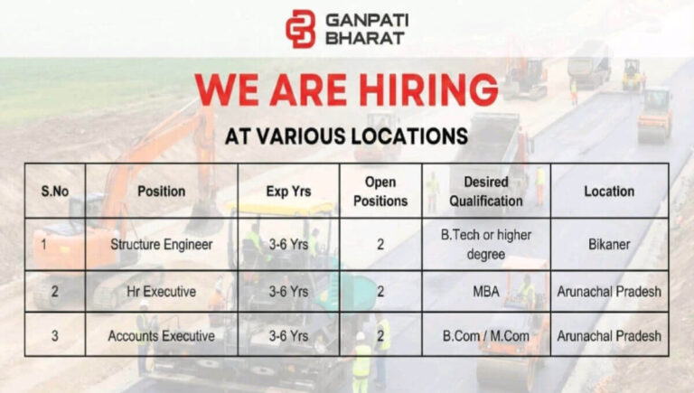 Ganpati Bharat Recruitment 2026 | Construction Industry Job | Structure Engineer, HR Executive, Accounts Executive Company Name Ganpati Bharat Ganpati …