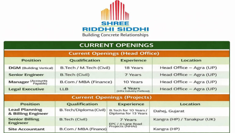 Shree Riddhi Siddhi Buildwell Ltd Vacancy | Head Office and Project Sites Location Company Name Shree Riddhi Siddhi Buildwell Ltd. …