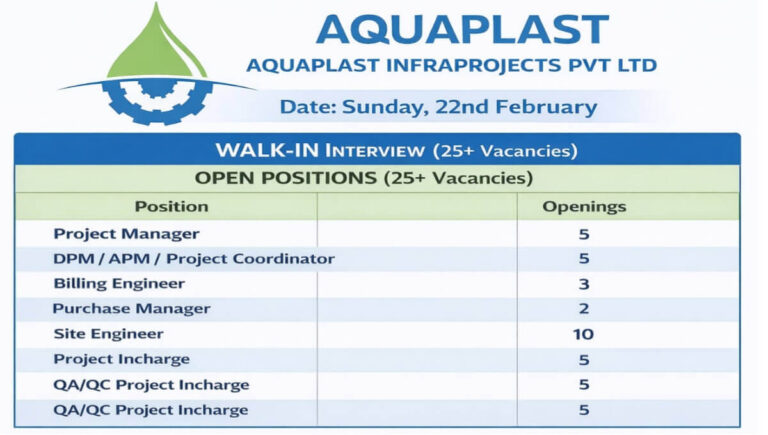 Aquaplast Infraprojects Pvt Ltd Walk In Sunday, 22nd February | Infrastructure Development Projects Company Name Aquaplast Infraprojects Pvt Ltd We …