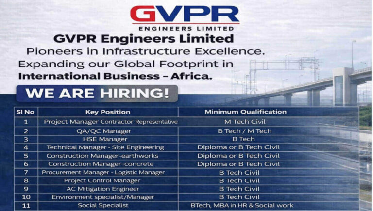 GVPR Engineers Limited Recruitment | Water Supply, Large Diameter Pipelines, Oil & Gas, Roads Projects