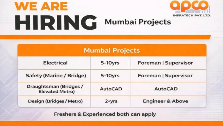 Jaypee Infratech Recruitment 2026 | Civil Engineer, Electrical Engineer, Supervisor, Plant Operator Company Name Jaypee Infratech Jaypee Infratech is expanding …