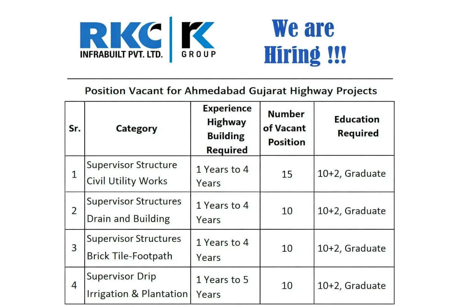 RKC Infrabuilt Pvt Ltd Vacancy | For Highway Projects in Ahmedabad, Gujarat | Construction Job Company Name RKC Infrabuilt Pvt. Ltd. RKC Infrabuilt …