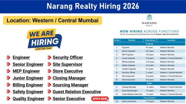 Narang Realty Hiring 2026 | Engineers, Sales & Procurement Jobs in Western Mumbai | Apply Now Company Name Narang Realty …