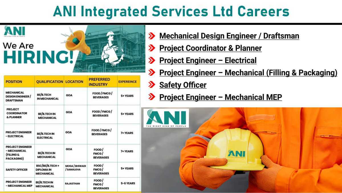 ANI Integrated Services Ltd Careers | MEP Mechanical Engineer Jobs in Rajasthan | FMCG Project Company Name ANI Integrated Services …