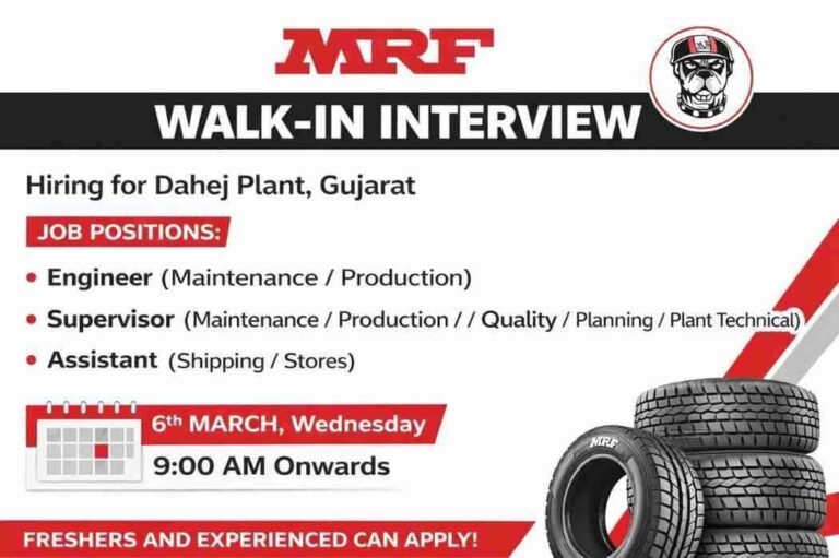 MRF Walk In Drive March 2026 | Diploma, BE / B.Tech / Degree (Mechanical / Electrical / Electronics / Mechatronics …