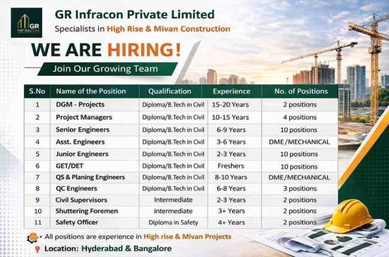 GR Infracon Private Limited Vacancy | High-Rise and Mivan Construction Projects | Construction Job Company Name GR Infracon Private Limited …