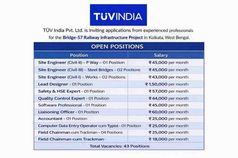 TÜV India Pvt Ltd Recruitment 2026 | Railway / PMC / PSU Projects | Bridge and Track works Company Name …
