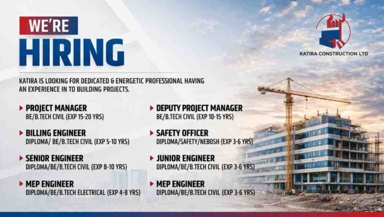 Katira Construction Ltd Recruitment 2026 | For B.E / B.Tech Civil and Diploma Degree Company Name Katira Construction Ltd Katira …