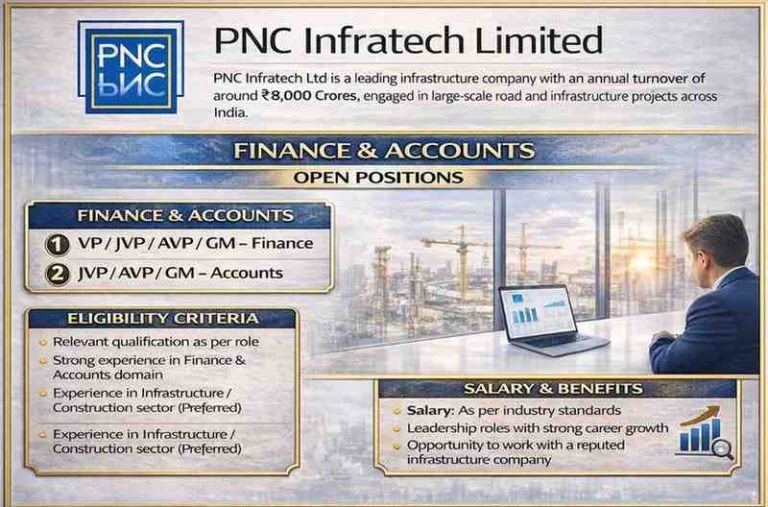 PNC Infratech Ltd Recruitment 2026 | For ₹8,000 Crores, Engaged in Large-scale Road and Infrastructure Projects Company Name PNC Infratech …
