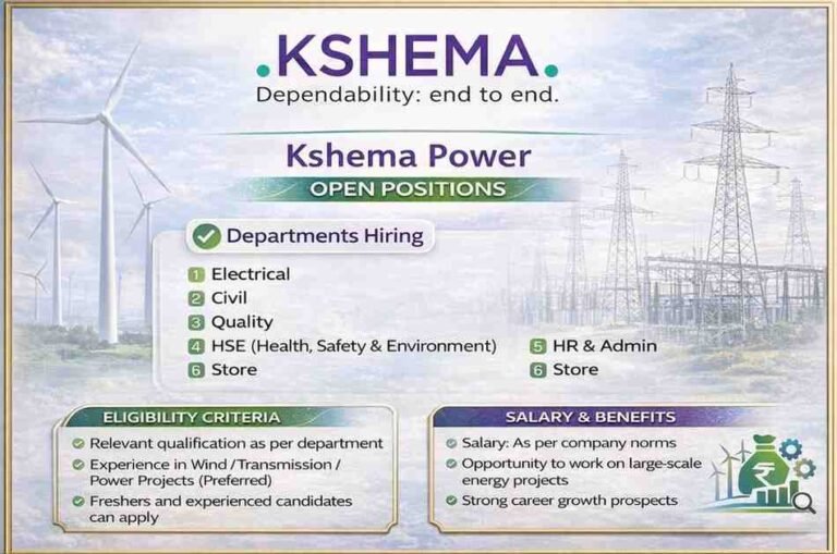 Kshema Power Urgent Hiring 2026 | For Wind Energy and Transmission Infrastructure Projects Company Name Kshema Power Kshema Power is …