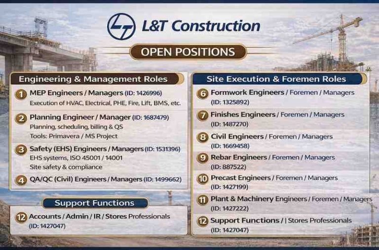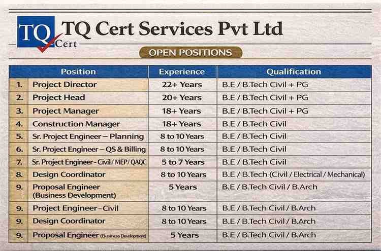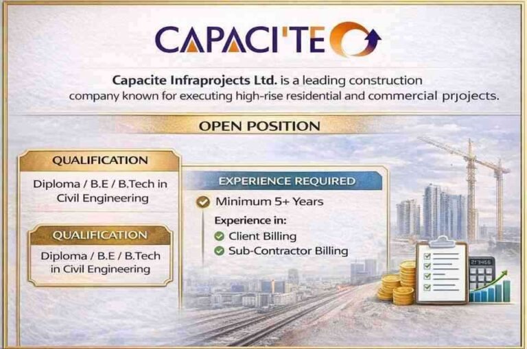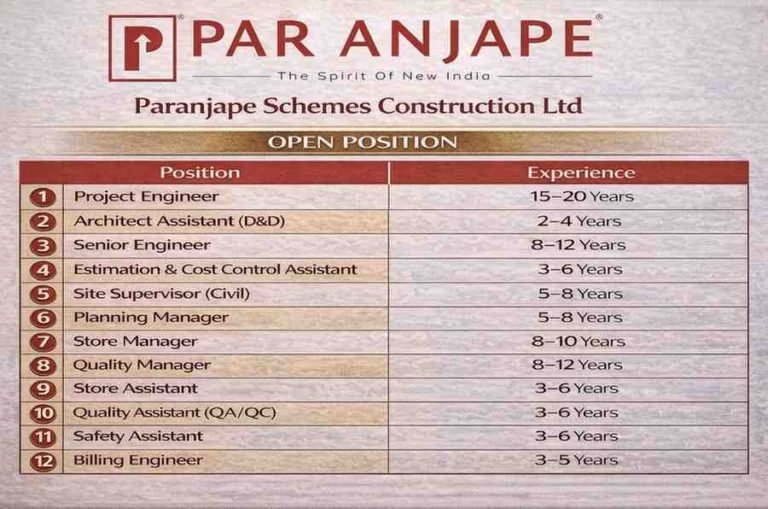 Paranjape Schemes Construction Ltd Vacancy 2026 | For Engineering, Planning, Quality, Billing, and Site Management Roles Company Name Paranjape Schemes …
