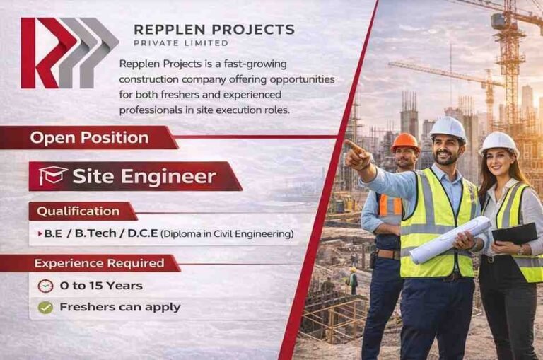 Repplen Projects Pvt Ltd Recruitment 2026 | For B,E / B,Tech / D,C,E Diploma in Civil Engineering Company Name Repplen …