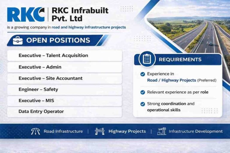RKC Infrabuilt Pvt Ltd Recruitment 2026 | For Road and Highway Infrastructure Project Company Name RKC Infrabuilt Pvt. Ltd. RKC …