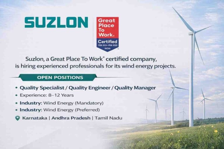 Suzlon Energy Urgent Requirement 2026 | For wind Energy Projects Company Name suzlon Suzlon, a Great Place To Work certified …