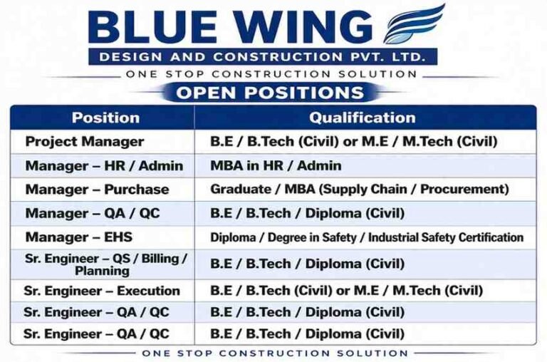 Blue Wing Design & Construction Pvt Ltd Vacancy | For Contribute to High-quality Project Company Name Blue Wing Design & …
