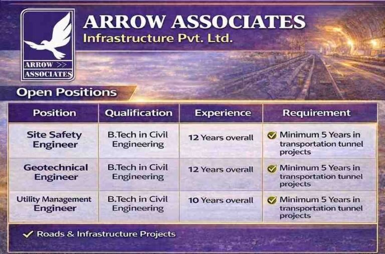 Arrow Associates Infrastructure Pvt Ltd Vacancy | For Transportation Tunnel Projects Company Name Arrow Associates Infrastructure Pvt. Ltd Arrow Associates …