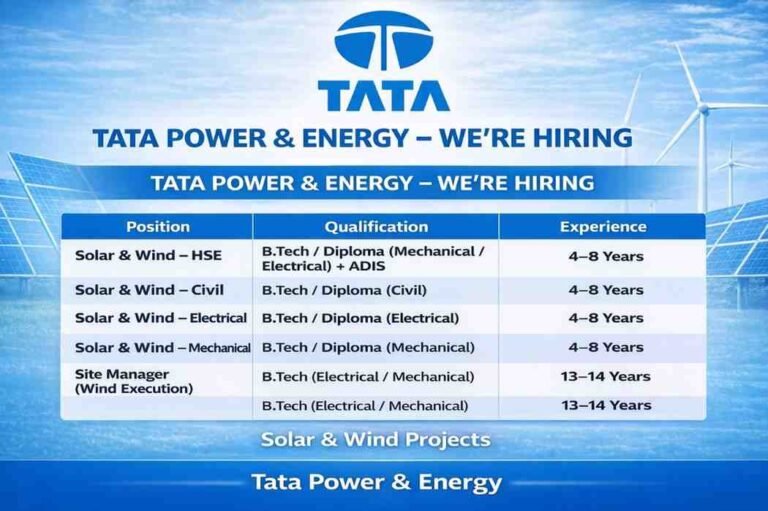 Tata Power & Energy Urgent Requirement | For Solar and Wind Energy Projects Across India Company Name Tata Power & …