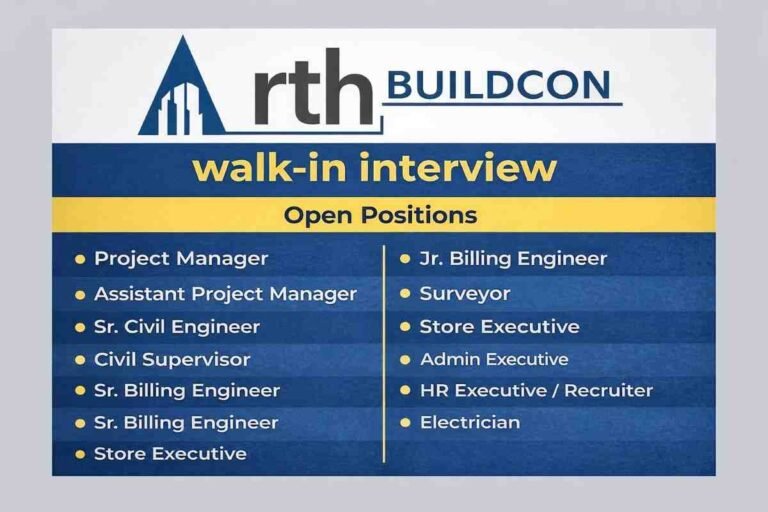 Arth Buildcon Walk-in Interview April 2026 | For High-rise Building Projects Company Name Arth Buildcon Arth Buildcon is conducting a …