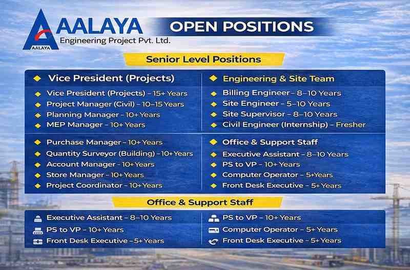 Aalaya Engineering Pvt Ltd Requirement 2026 | For Government Building Projects Across Multiple Locations Company Name Aalaya Engineering Pvt Ltd …