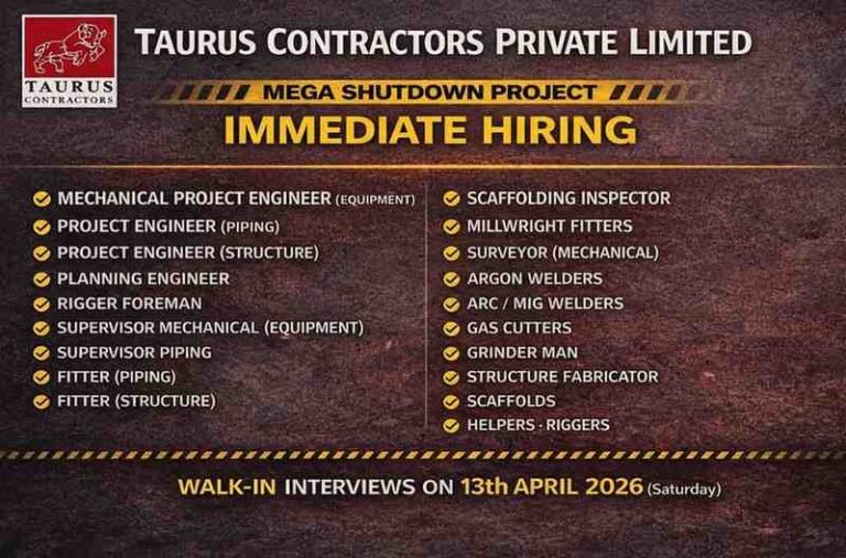 Taurus Contractors Private Limited Vacancy | Oil & Gas, Shutdown Projects, and industrial Services Company Name Taurus Contractors Private Limited …