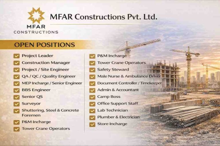 MFAR Constructions Pvt Ltd Vacancy | For High-rise Construction Projects in Bangalore Company Name MFAR Constructions Pvt. Ltd. MFAR Constructions …