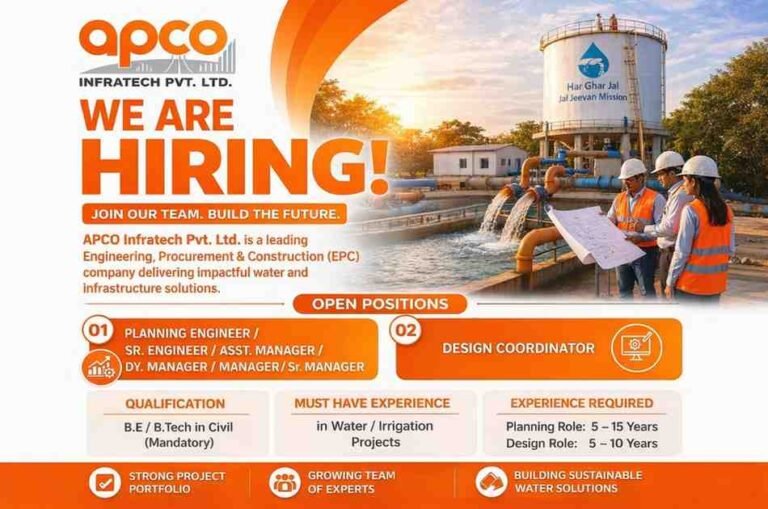 APCO Infratech Pvt Ltd Requirement 2026 | For Large-scale Water Infrastructure Projects Company Name APCO Infratech Pvt. Ltd APCO Infratech …