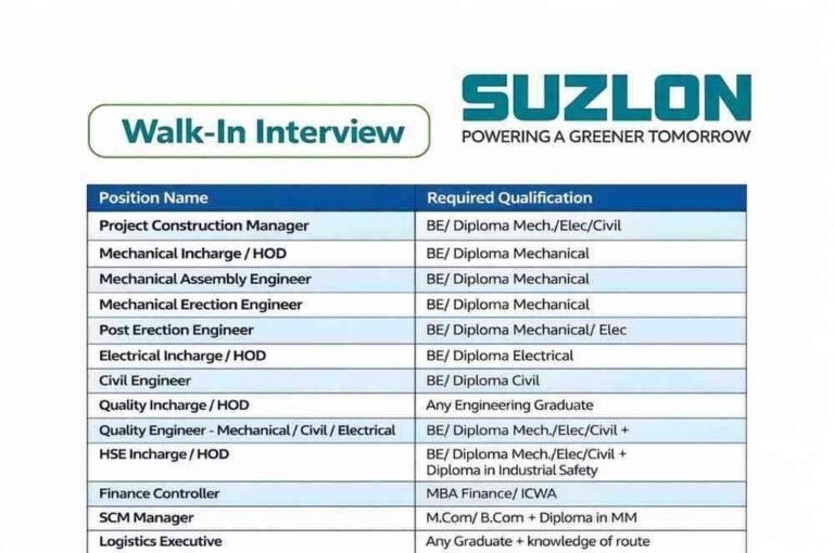 Suzlon Walk-in Interview April 2026 | Wind Energy Project For Multipal Location Company Name suzlon Suzlon, a Great Place to …