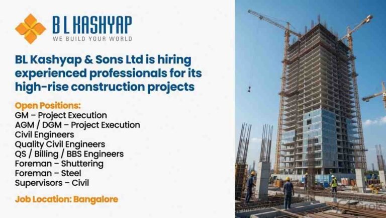 BL Kashyap & Sons Ltd Vacancy | For MIVAN Construction and Project Company Name BL Kashyap & Sons Ltd BL …