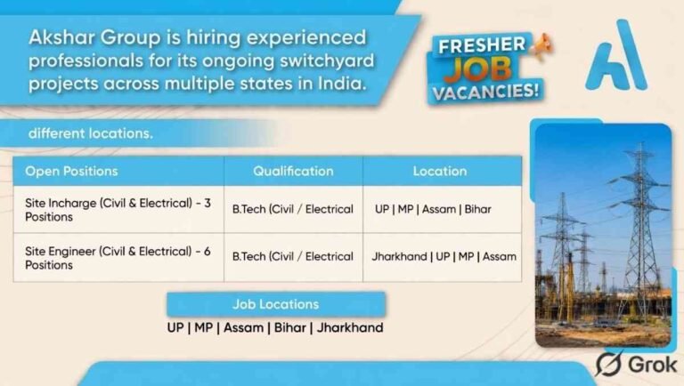 Akshar Group Urgent Hiring 2026 | For Ongoing Switchyard Projects Across Multiple States in India Company Name Akshar Group Akshar …