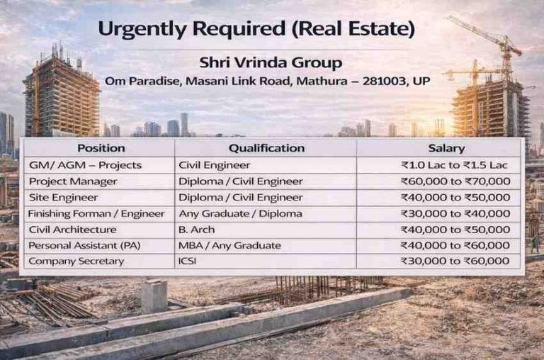 Shri Vrinda Group Vacancy 2026 | For Real Estate Projects Mathura