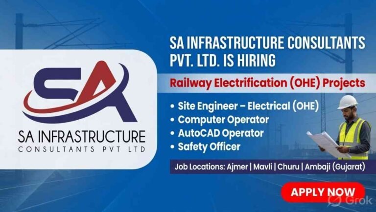 SA Infrastructure Consultants Pvt Ltd Vacancy | For Railway Electrification (OHE) projects in Rajasthan and Gujarat Company Name SA Infrastructure …