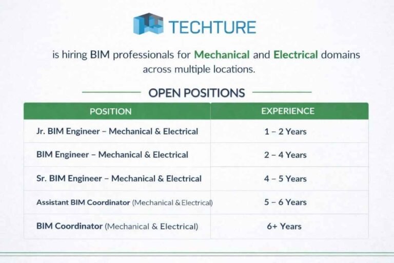 Techture New Construction Job Opening | For Global Design Projects Company Name Techture Techture is hiring BIM professionals for Mechanical …