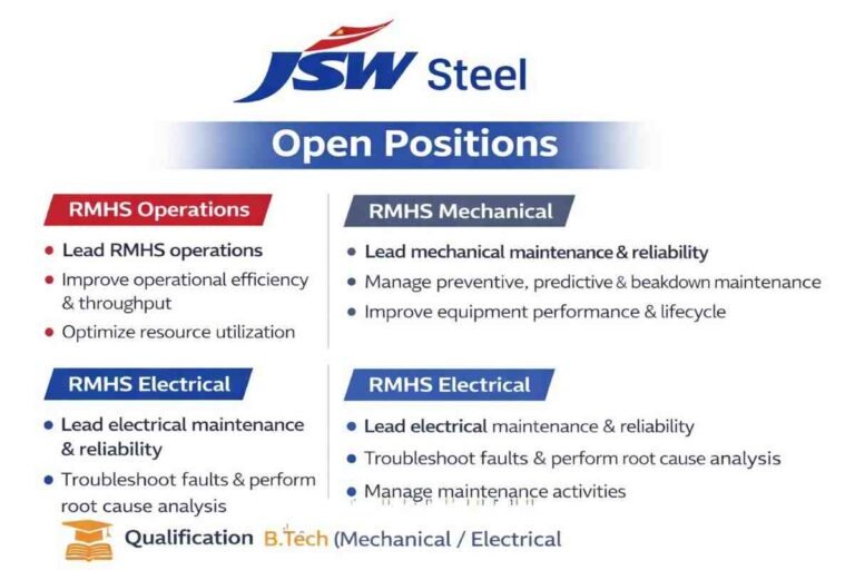 JSW Steel New Job Opening 2026 | For RMHS Operations & Maintenance Roles Company Name JSW Steel JSW Steel is …