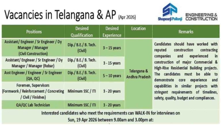 Shapoorji Pallonji Walk In Interview | ITI, Diploma, Be and B.tech Job | Construction Job Company Name Shapoorji Pallonji Engineering …