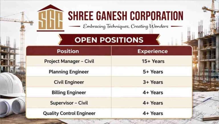 Shree Ganesh Corporation Vacancy | For industrial Projects in Gujarat | Construction Job Company Name Shree Ganesh Corporation Shree Ganesh …