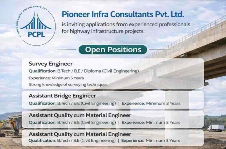 Pioneer Infra Consultants Vacancy | For Highway Infrastructure Project Company Name Pioneer Infra Consultants Pvt. Ltd. Pioneer Infra Consultants Pvt. …