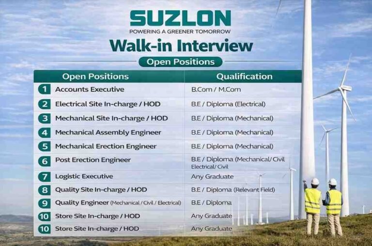 Suzlon Walk-in Interview April 2026 | For Wind Energy Sector With PAN India Project Company Name suzlon Suzlon, a leading …