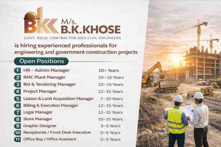 BK Khose Urgent Requirement 2026 | For Large-scale Government Infrastructure Projects Company Name B.K. Khose M/s. B.K. Khose is hiring …