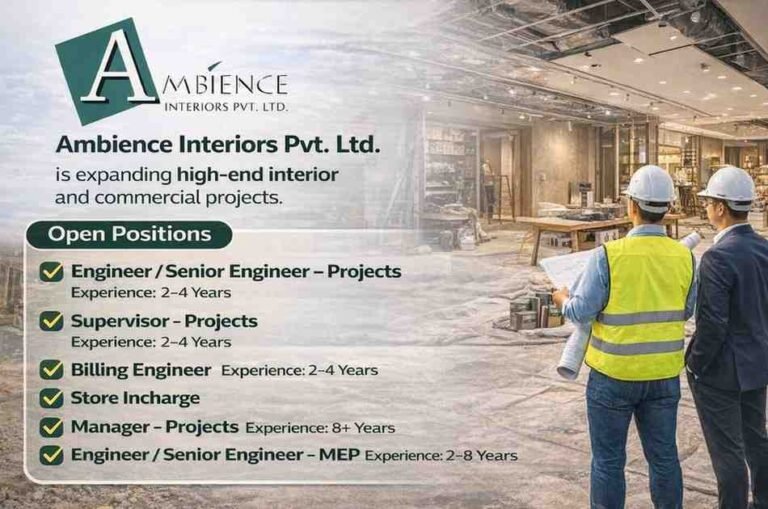 Ambience Interiors Pvt Ltd Vacancy 2026 | For Interior Fit-Out Projects in Gurgaon & Bangalore Company Name Ambience Interiors Pvt. …