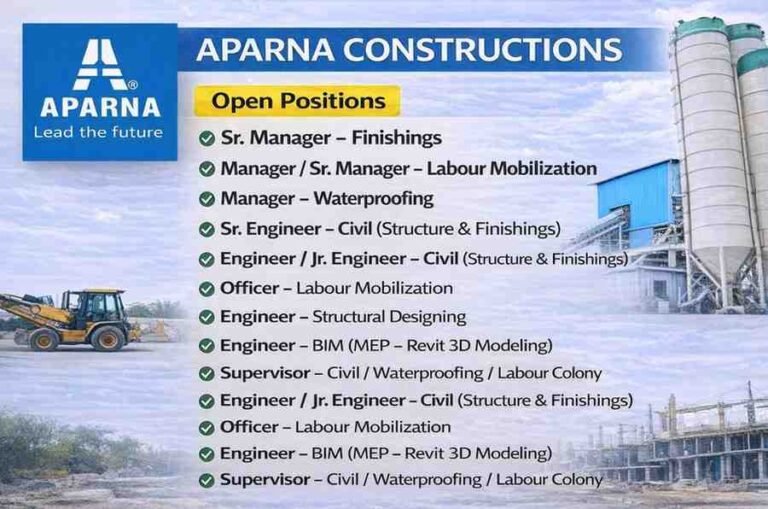 Aparna Constructions New Job Vacancy | For High Rise Residential Building Projects Company Name Aparna Constructions We’re Hiring | High-Rise …