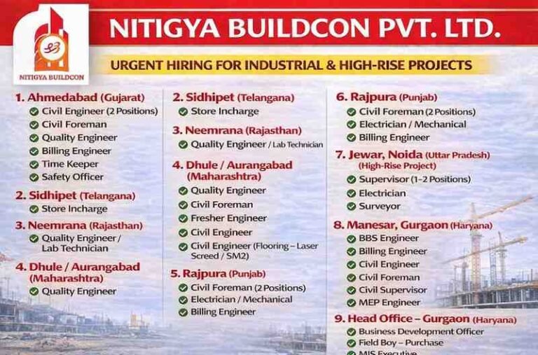 Nitigya Buildcon Pvt Ltd Vacancy 2026 | For Industrial & High-Rise Projects Company Name Nitigya Buildcon Pvt. Ltd. Nitigya Buildcon …