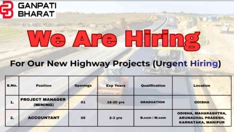 Ganpati Bharat Vacancy 2026 | For Infrastructure and Highway Projects Company Name Ganpati Bharat Ganpati Bharat is hiring professionals for …