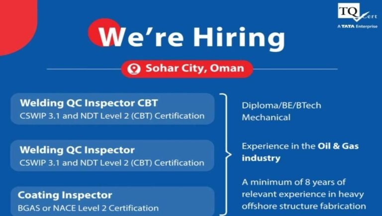 TQ Cert Services Urgent Requirement | Offshore QC & Inspection | For Oil & Gas Project Company Name TQ Cert …
