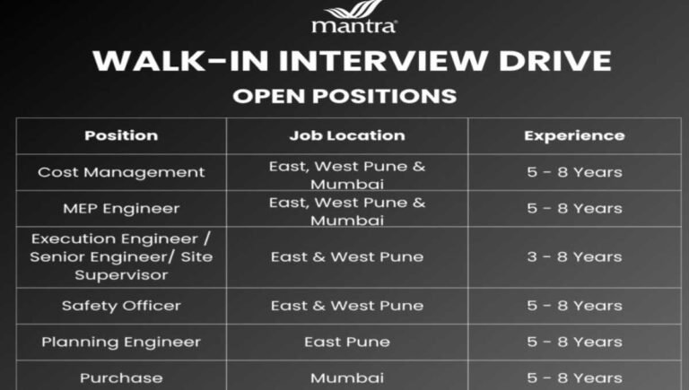 Mantra Properties Walk-In Interview April | Real Estate and Construction Company Name Mantra Properties Mantra Properties is conducting a walk-in …