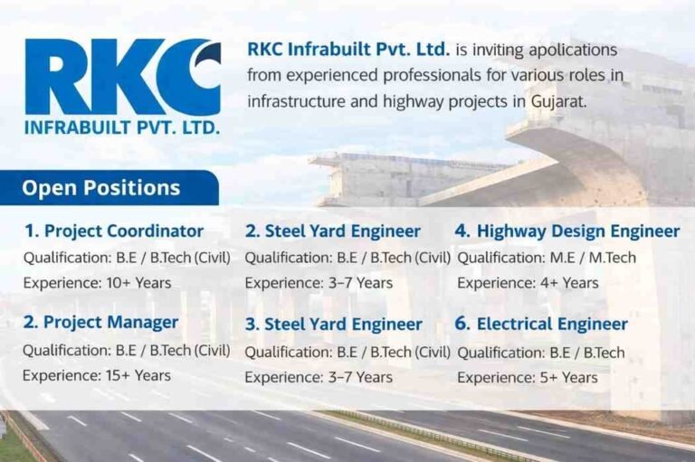 RKC Infrabuilt Pvt Ltd Vacancy 2026 | Civil, Mechanical, Electrical | For Infrastructure and Highway Projects Company Name RKC Infrabuilt …