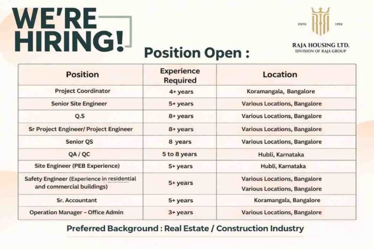 Raja Housing Ltd Requirement 2026 | For Real Estate & Construction Roles Company Name Raja Housing Ltd Raja Housing Ltd., …
