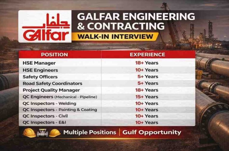 Galfar Engineering & Contracting Walk-in Interview | For Oil & Gas EPC Projects in Abu Dhabi Company Name Galfar Engineering …